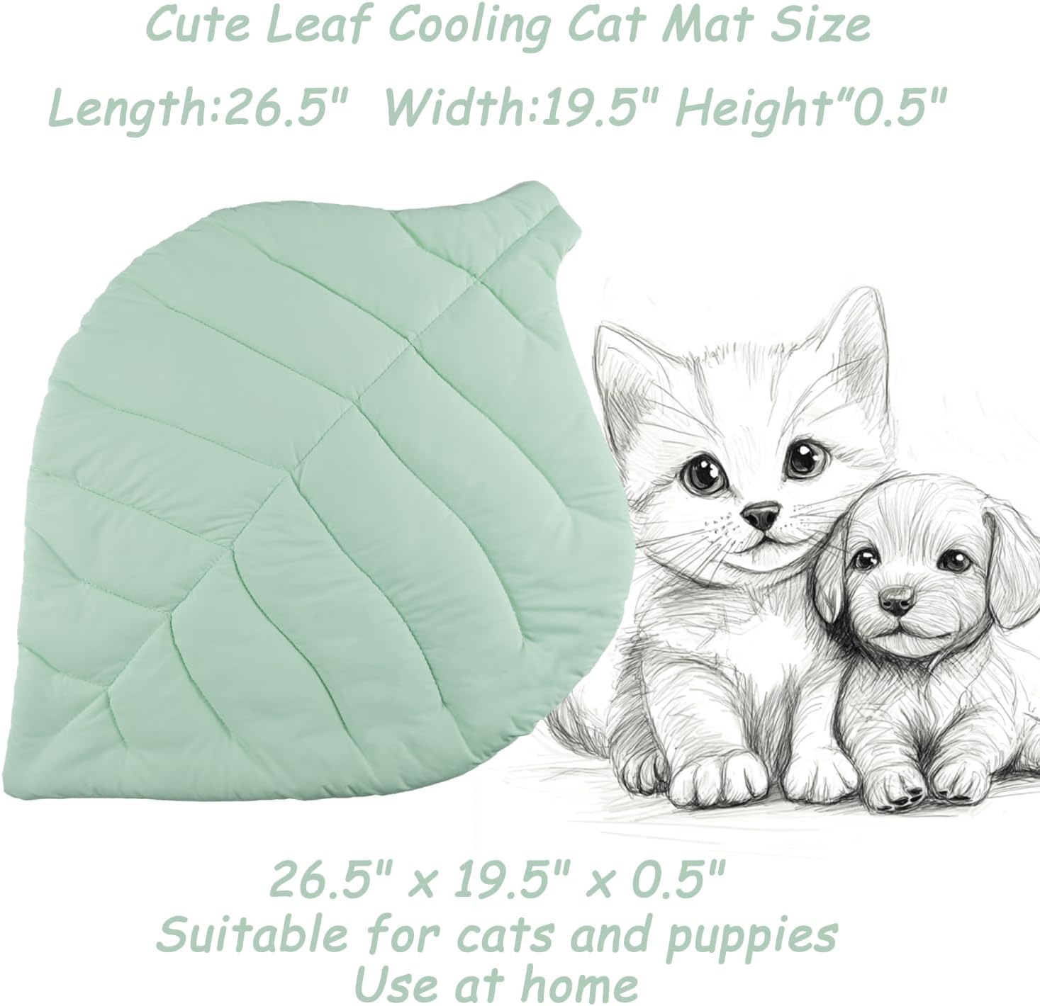 Cat Cooling Mat Pet Leaf Shaped Pad 26.5"x19.5" Breathable Durable Easy to Clean Pet Cool Mats for Cat and Small Dog use in Floor,Bed,Sofa,Chair,Kennel (Light Green)